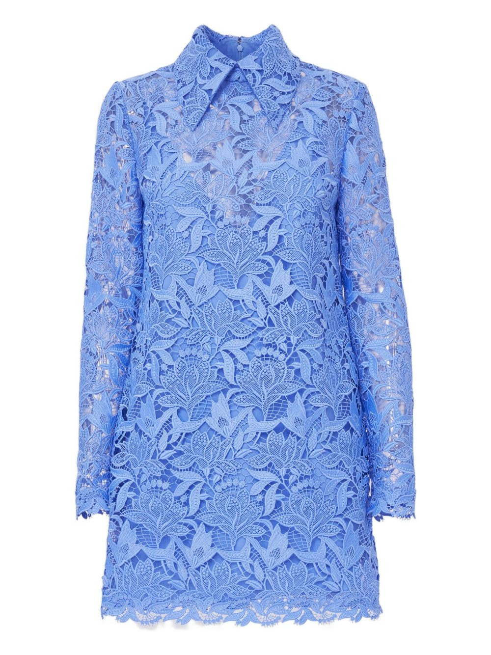 floral-lace mini dress Highlights - Cornflower blue - Floral lace - Long sleeves - Pointed collar - A-line - Scalloped hem Made in Italy Composition Polyester 100% Washing instructions Dry Clean Only