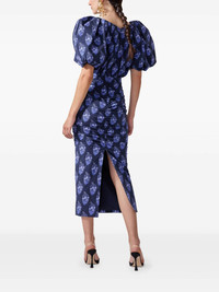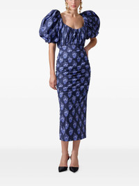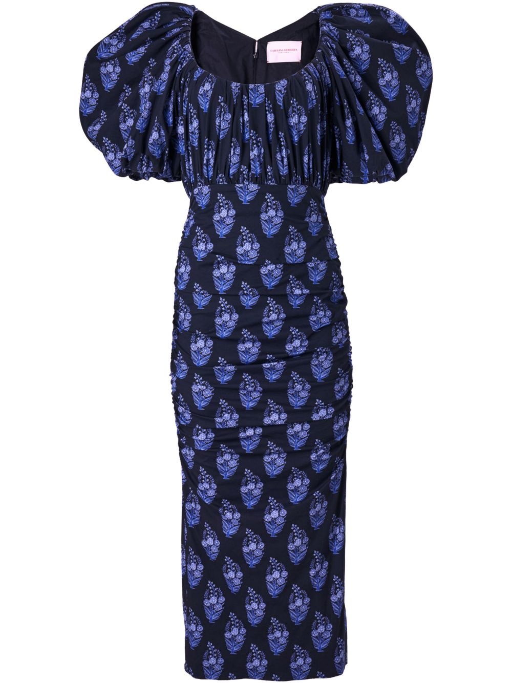 floral-print balloon-sleeve dress Highlights - Blue - Rear zip fastening - Balloon sleeves - Ruched detailing Made in United States Composition Cotton 97%, Elastane 3%