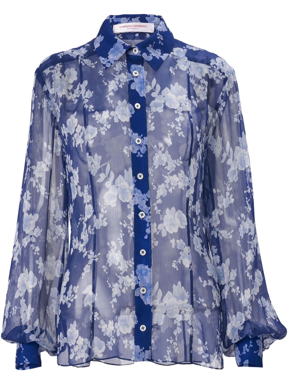 floral-print blouse Highlights - Blue - Button fastening - Classic collar - Long sleeves - Buttoned cuffs Made in United States Composition Silk 100%