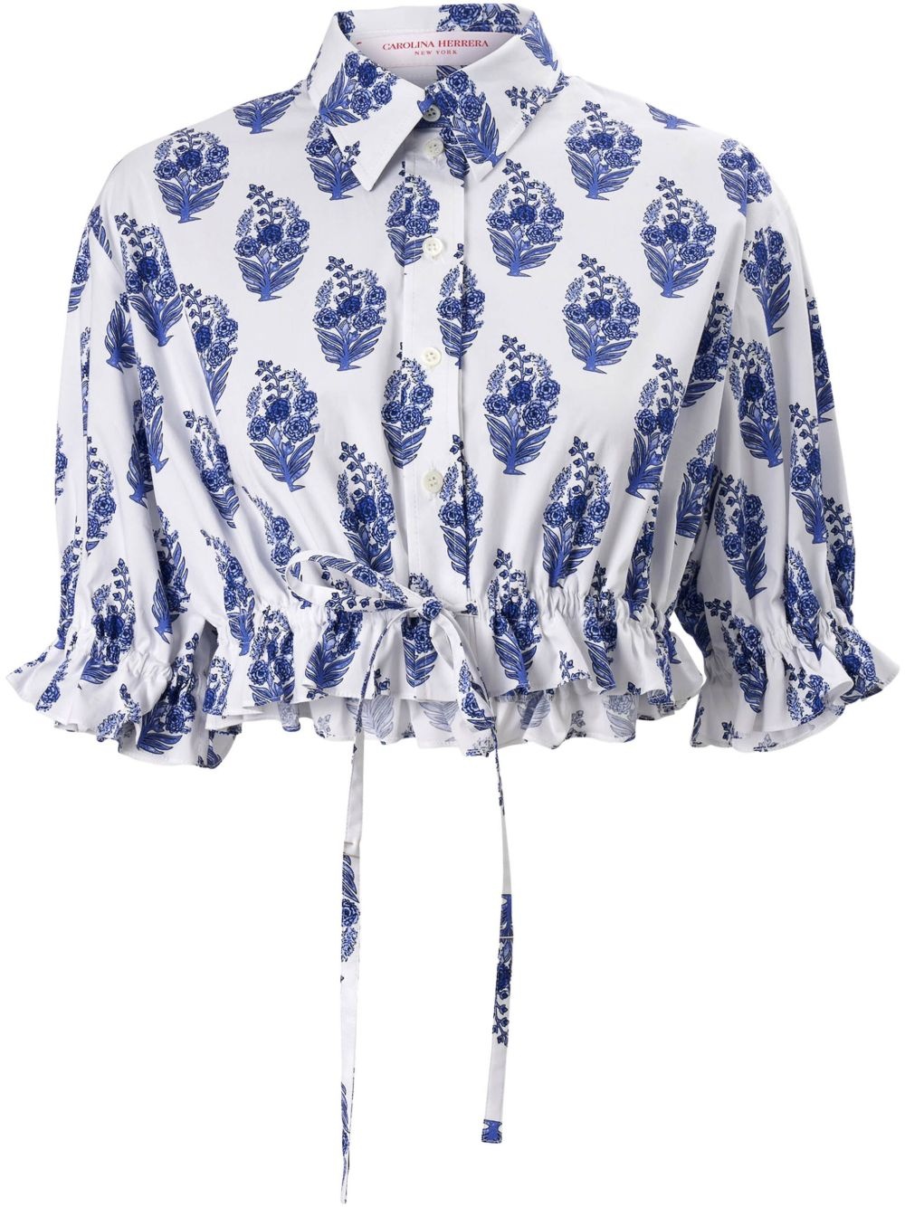 floral-print cropped shirt Highlights - White - Front button fastening - Drawstring hem - Elasticated cuffs - Cropped Made in Italy Composition Cotton 97%, Elastane 3%