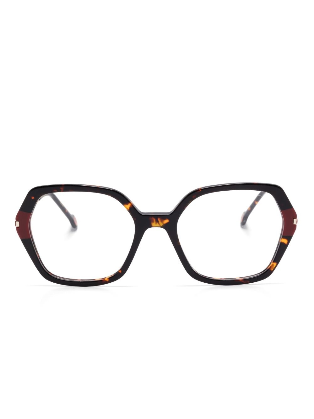 geometric-frame glasses Highlights - Black - Nose pads - Curved tips - These glasses come with a protective case. - All glasses from farfetch are sold as non-prescription frames. Made in Italy Composition Acetate 100%, Metal 100% SIZE & FIT Measurement Arm Length 5.51 in(14 cm) Bridge Width 0.74 in(1.9 cm) Lens Diameter 2.12 in(5.4 cm) Total Width 5.43 in(13.8 cm)