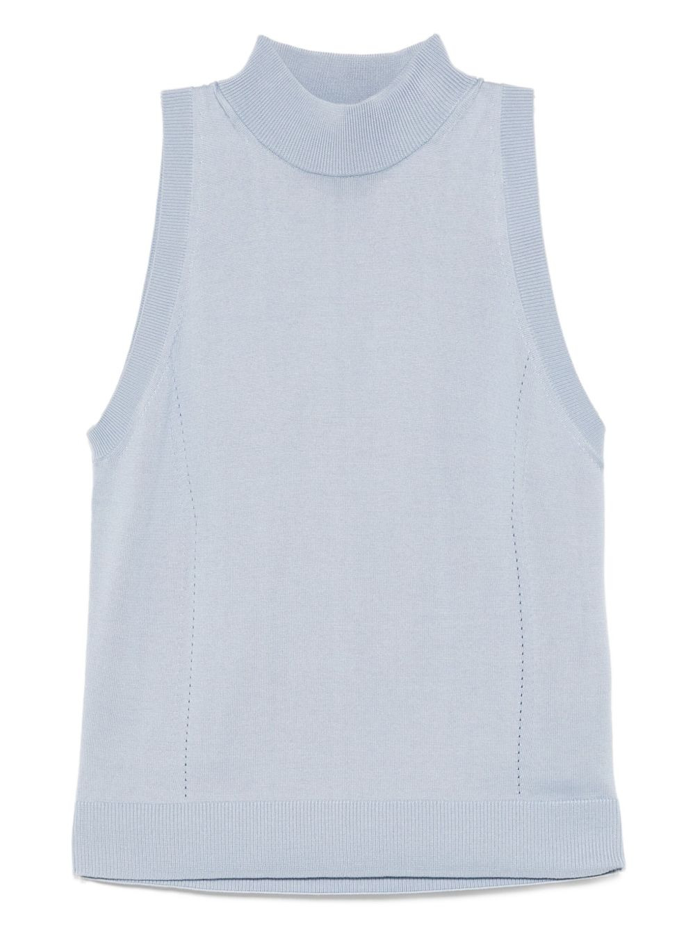 knitted vest Highlights - Light blue - Mock neck - Sleeveless - Ribbed hem Imported Composition Silk 55%, Cotton 45% SIZE & FIT Model measurements Height 5 ft 10 in(1.77 m) Bust/Chest 30.31 in(77 cm) Hips 34.25 in(87 cm) Waist 25.19 in(64 cm) FittingInformation Designed for a relaxed fit, this piece allows for comfort and movement when worn Made with a lightweight knit, this piece offers some stretch