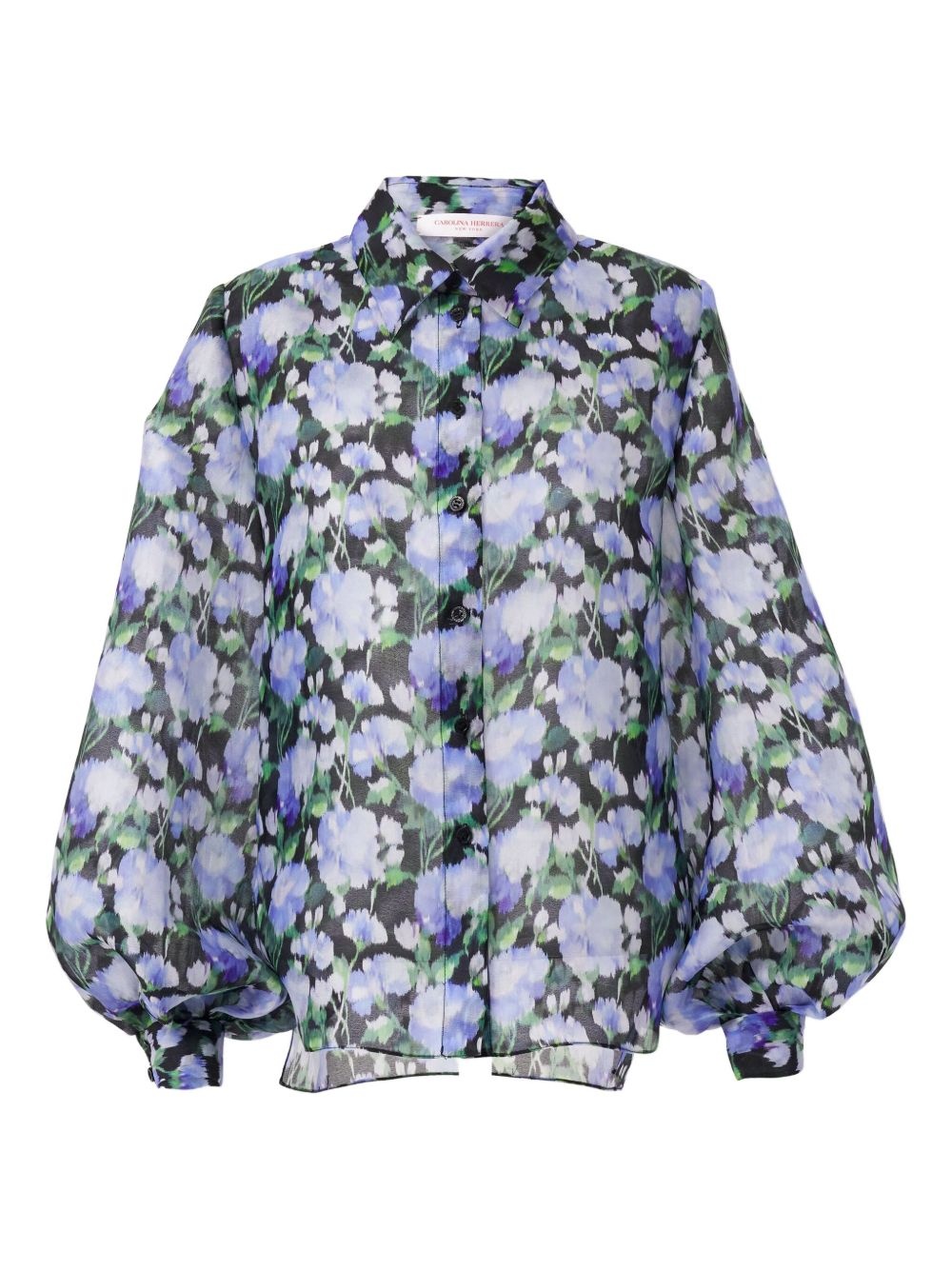 peony-print shirt Highlights - Iris blue - Front button fastening - Buttoned cuffs - Long puff sleeves - Classic collar Made in United States Composition Silk 100% Washing instructions Dry Clean Only