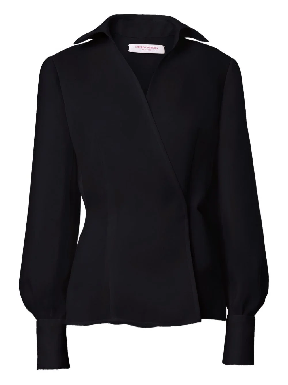 puff-sleeve wrap top Highlights - Black - Silk - Pollo collar - Long sleeves - Wrap construction - Gazar texture Made in United States Composition Silk 100% Washing instructions Dry Clean Only