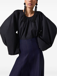 raglan-sleeve blouse Highlights - Black - Cotton blend - Long raglan sleeves - Single rear button fastening - Ruched detailing - Crew neck - Elasticated cuffs - Straight hem Made in Italy Composition Cotton 97%, Polyurethane 3%