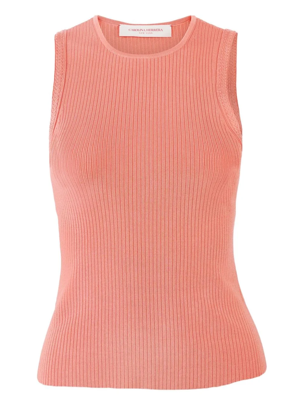 Ribbed tank Highlights - Pink - Ribbed knit - Sleeveless - Round neck - Braided-trim - Viscose knit Imported Composition Viscose 89%, Nylon 10%, Polyurethane 1% Washing instructions Dry Clean Only