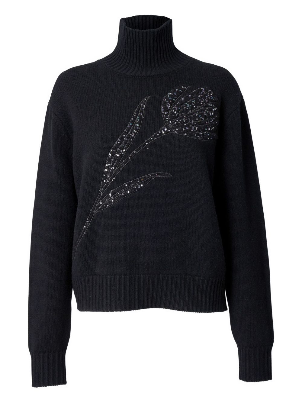 sequin-embellished turtleneck sweater Highlights - Black - Turtleneck - Wool-cashmere blend - Sequin flower embellishment - Long sleeves Imported Composition Wool 90%, Cashmere 10% Washing instructions Read Manufacturer Guidelines
