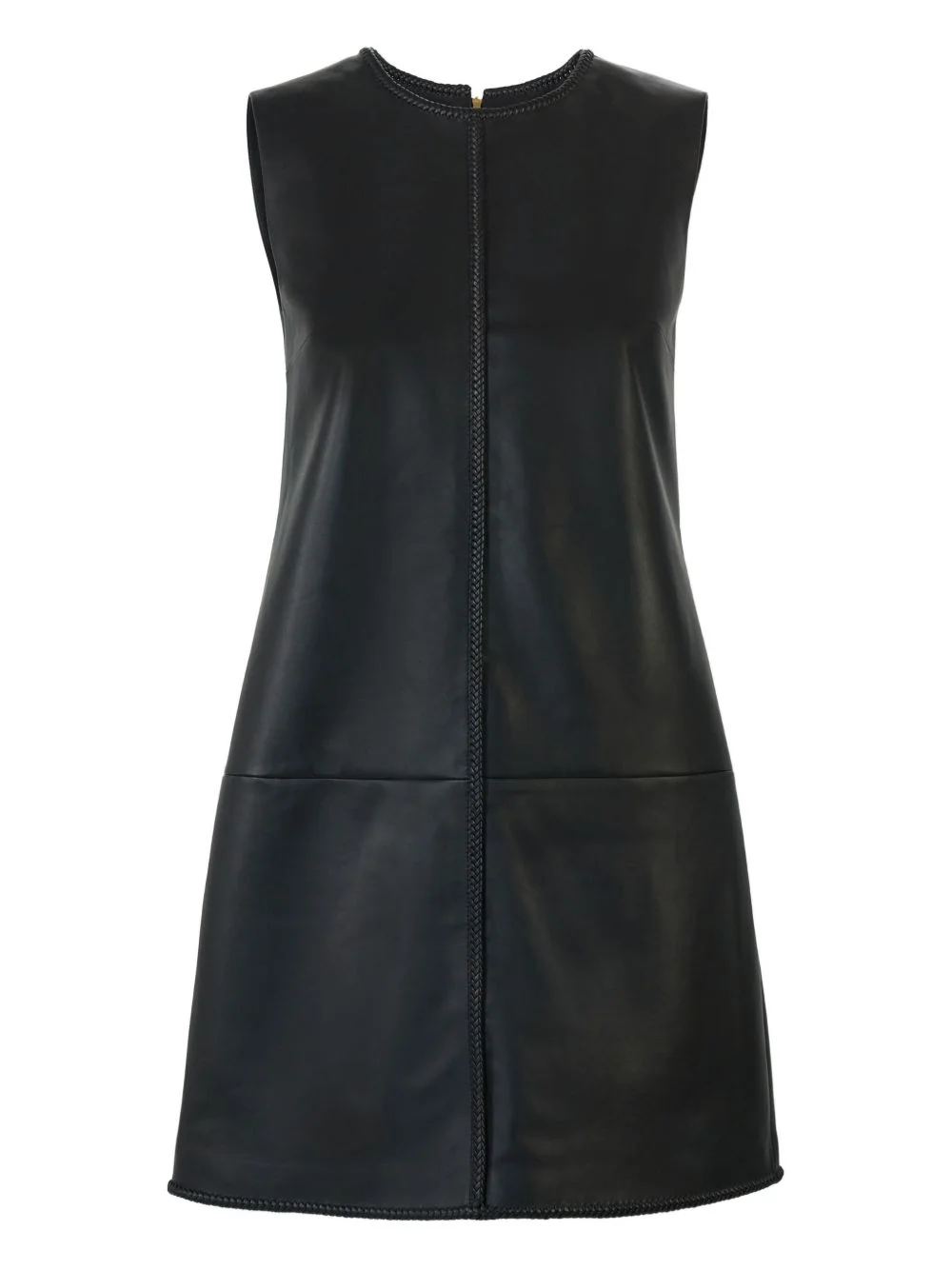 sleeveless leather mini dress Highlights - Black - Leather - Sleeveless - Exposed zip-fastening - Braided-trim - Panelled-design Imported Composition Calf Leather 100% Washing instructions Dry Clean Only