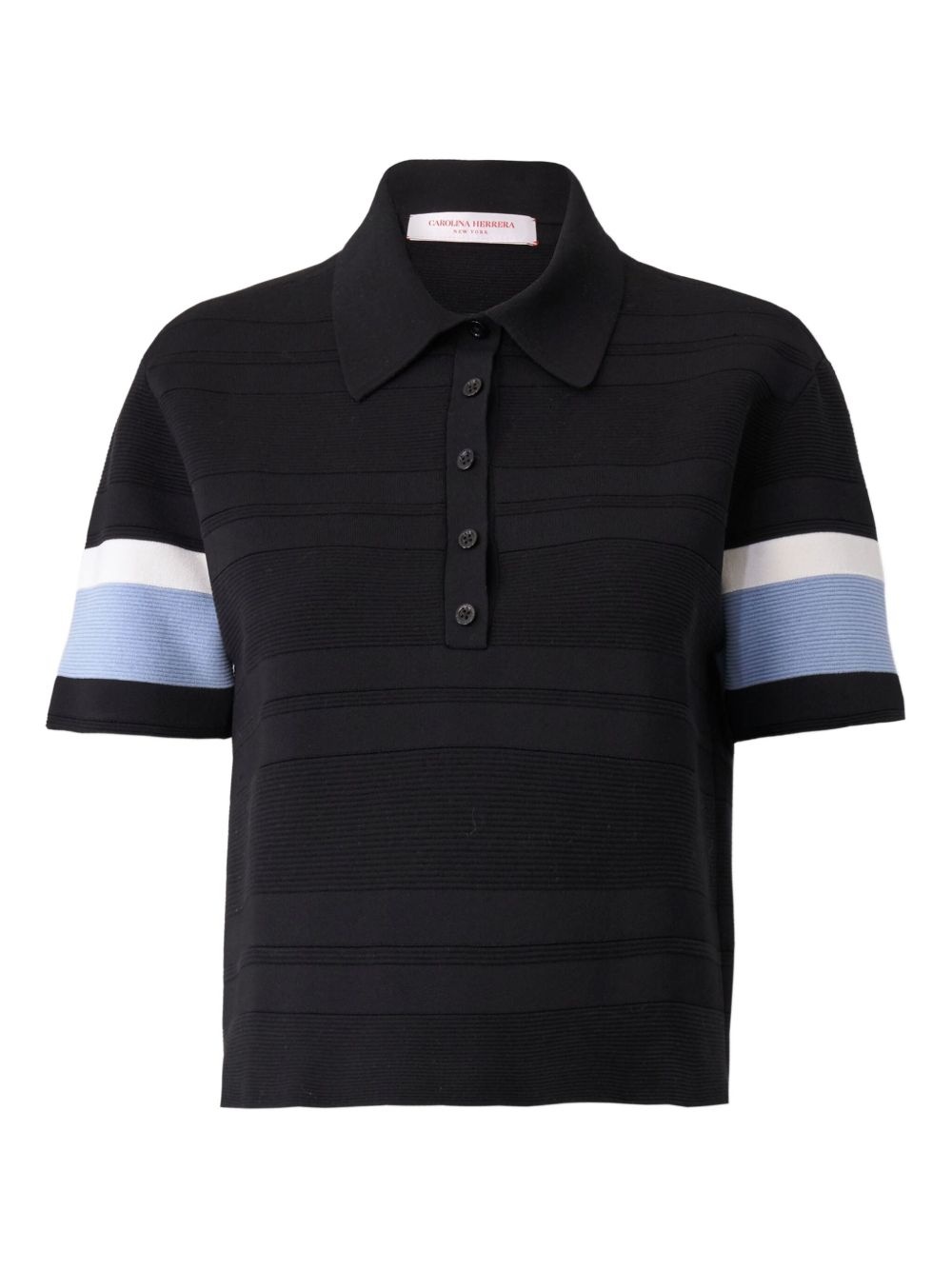 stripe-detail polo top Highlights - Black - Short front button fastening - Short sleeves - Straight hem Made in Italy Composition Cotton 38%, Viscose 38%, Fabric 24% Washing instructions Dry Clean Only