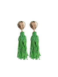 tassel drop earrings Highlights - Green and gold-tone - Drop clip-on - Beaded - Tassel - Clip-fastening Imported Washing instructions Do Not Wash/Do Not Dry Clean