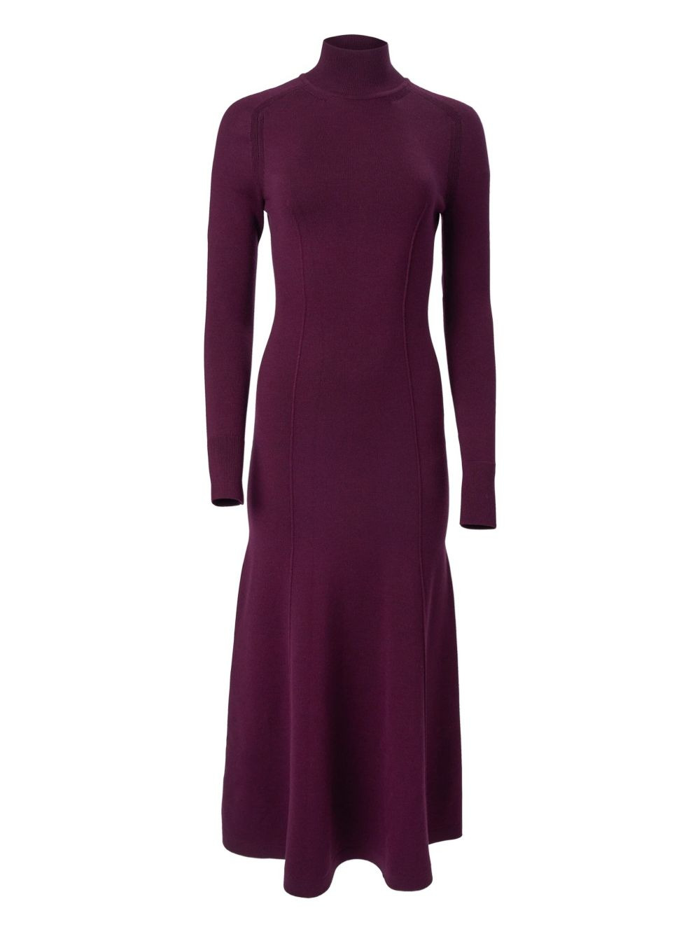 turtleneck wool-silk dress Highlights - Burgundy - Turtleneck neckline - Long sleeves - Flared hem Made in Italy Composition Virgin Wool 70%, Silk 30% Washing instructions Read Manufacturer Guidelines