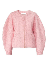 tweed jacket Highlights - Bubblegum pink - Front zip fastening - Two side welt pockets - Collarless - Balloon sleeves Made in Italy Composition Cotton 48%, Polyester 32%, Fabric 20%