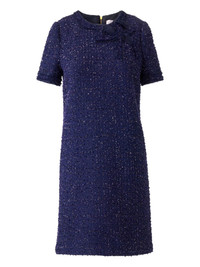 tweed midi dress Highlights - Midnight blue - Rear zip fastening - Crew neck - Short sleeves - Bow detailing Made in Italy Composition Cotton 48%, Polyester 32%, Fabric 20% Washing instructions Dry Clean Only