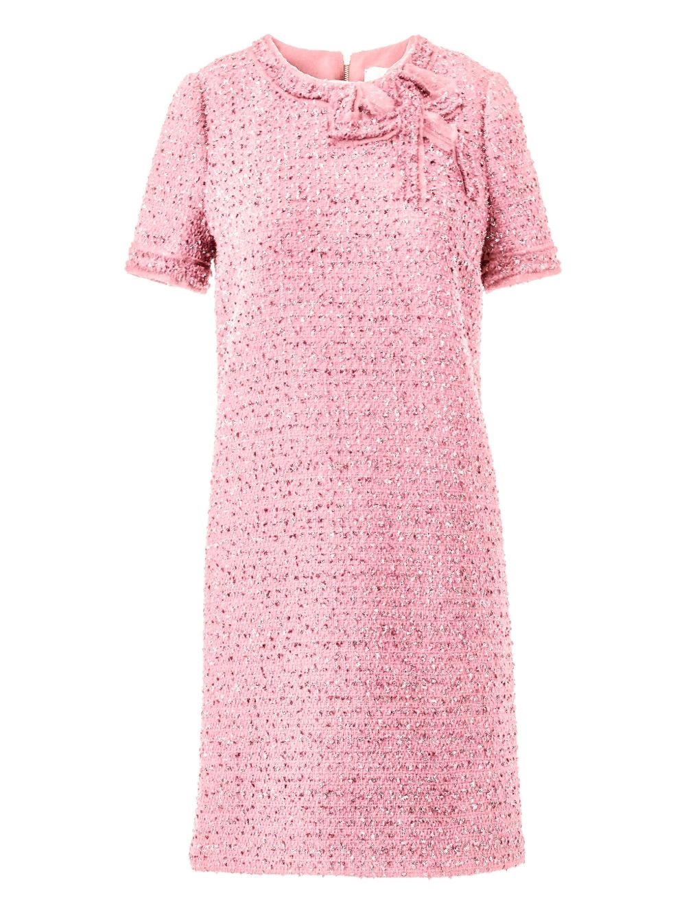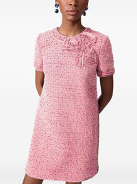 tweed mini dress Highlights - Flamingo pink - Rear zip fastening - Crew neck - Short sleeves - Bow detailing Made in Italy Composition Cotton 48%, Polyester 32%, Fabric 20%