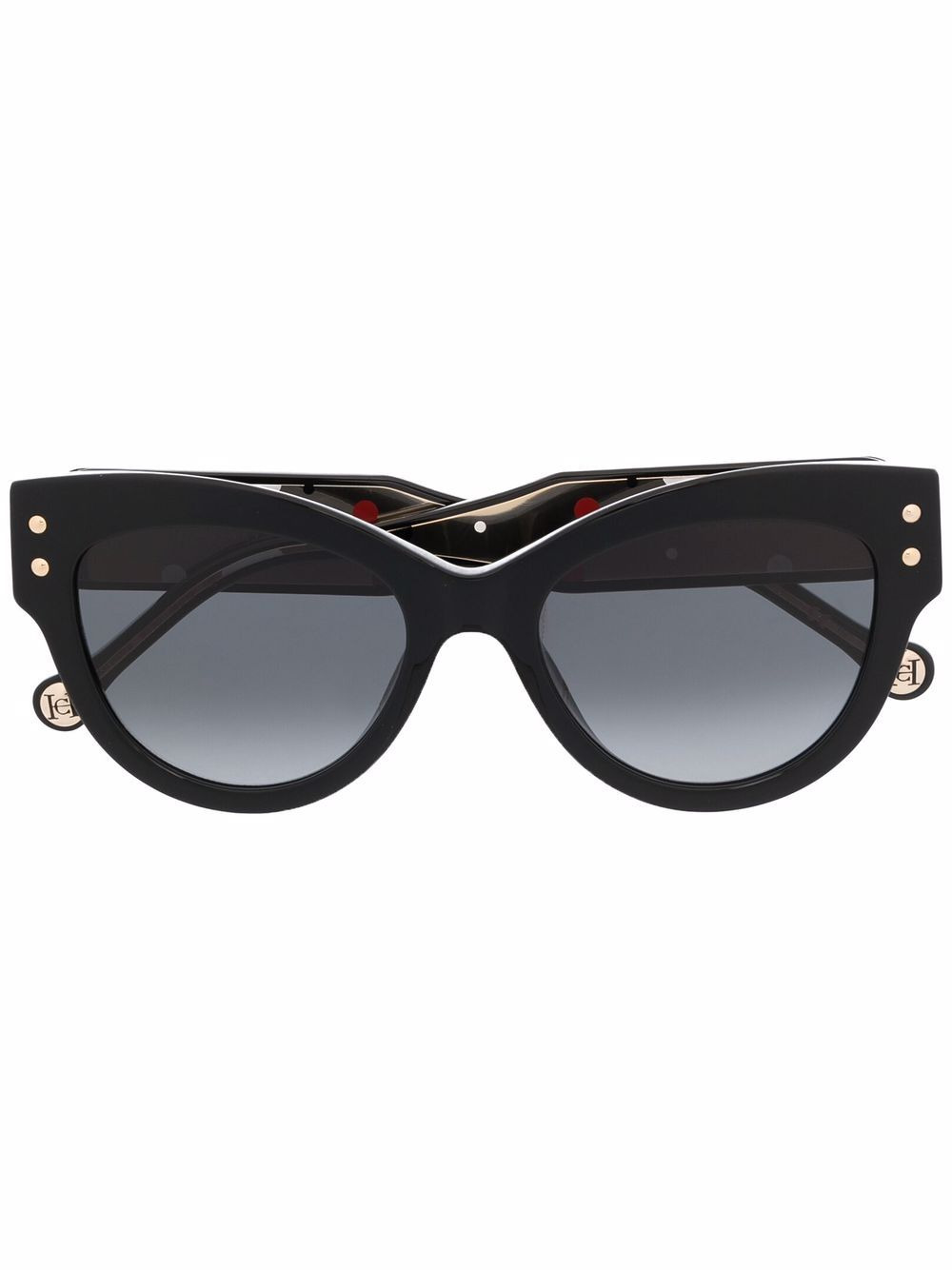 wayfarer-frame sunglasses jet-black round frame green tinted lenses silver-tone hardware These glasses come with a protective case. Made in Italy Composition Acetate 100% SIZE & FIT Measurement Arm Length 5.7 in(14.5 cm) Bridge Width 0.74 in(1.9 cm) Lens Diameter 2.12 in(5.4 cm) Total Width 5.78 in(14.7 cm)