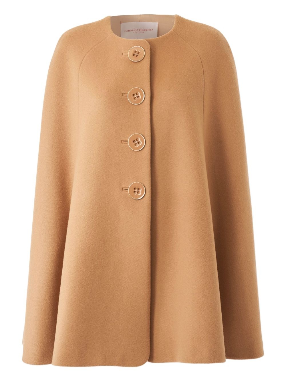 wool cape Highlights - Sand beige - Front button fastening - Cape design Made in United States Composition Wool 100% Washing instructions Dry Clean Only