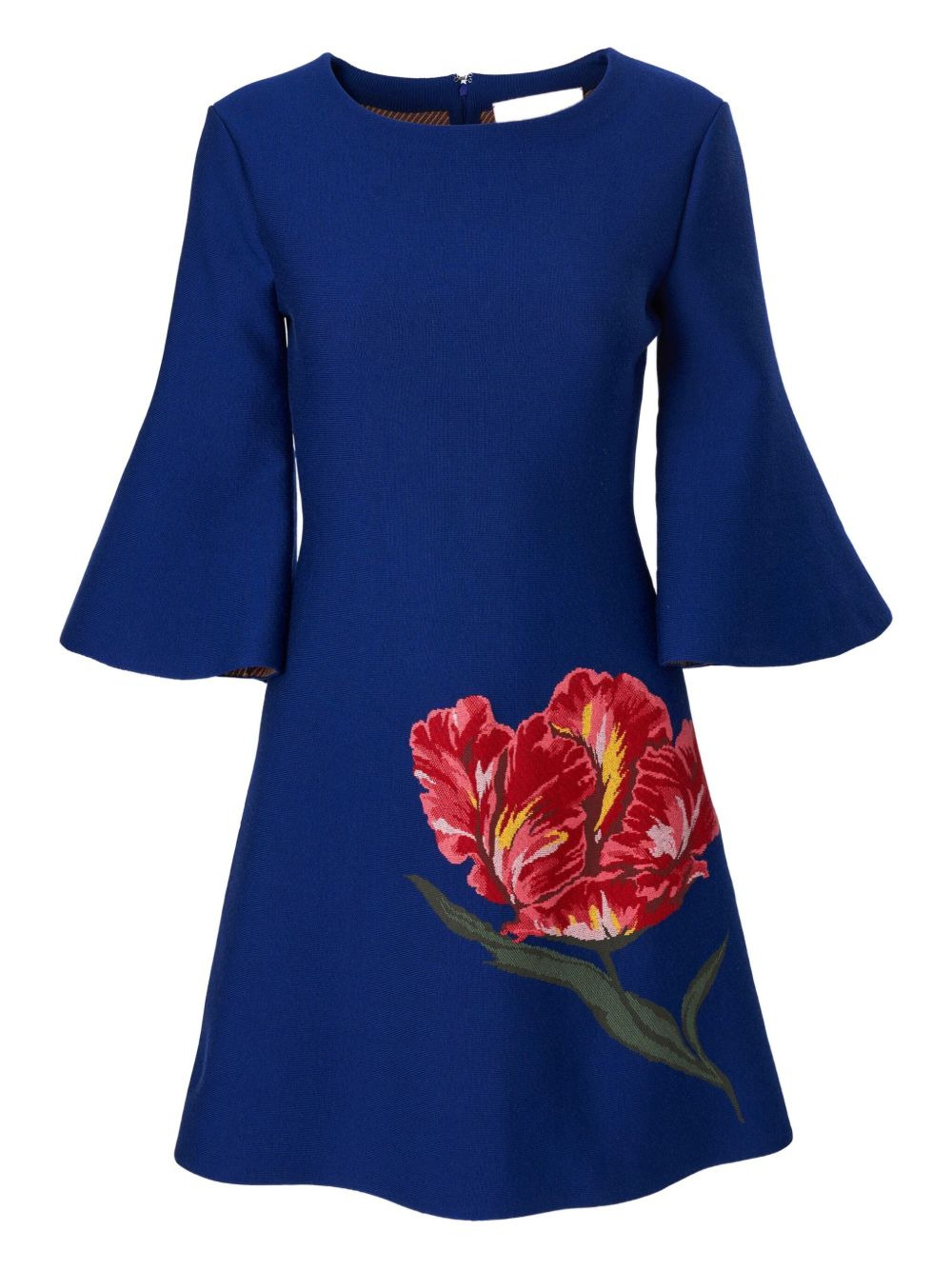 wool mini dress Highlights - Blue - Wool - Flared sleeves - Floral jacquard - A-line - Rear zip fastening Made in Italy Composition Wool 100% Washing instructions Read Manufacturer Guidelines