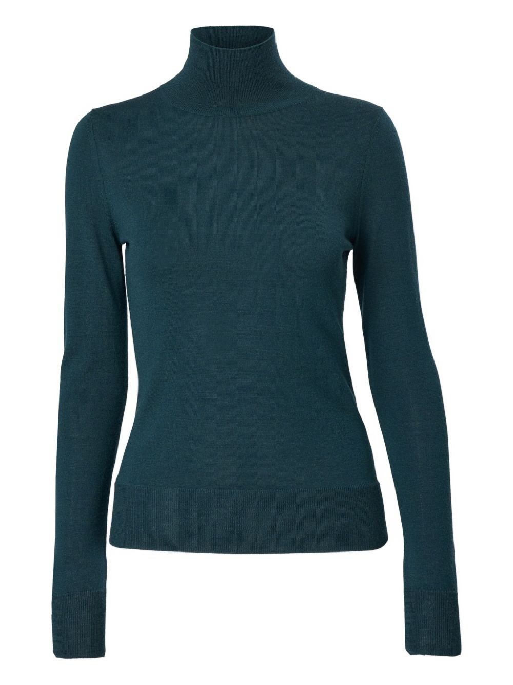 wool-silk sweater Highlights - Teal green - Turtleneck - Long sleeves - Ribbed trims Imported Composition Virgin Wool 70%, Silk 30% Washing instructions Dry Clean Only