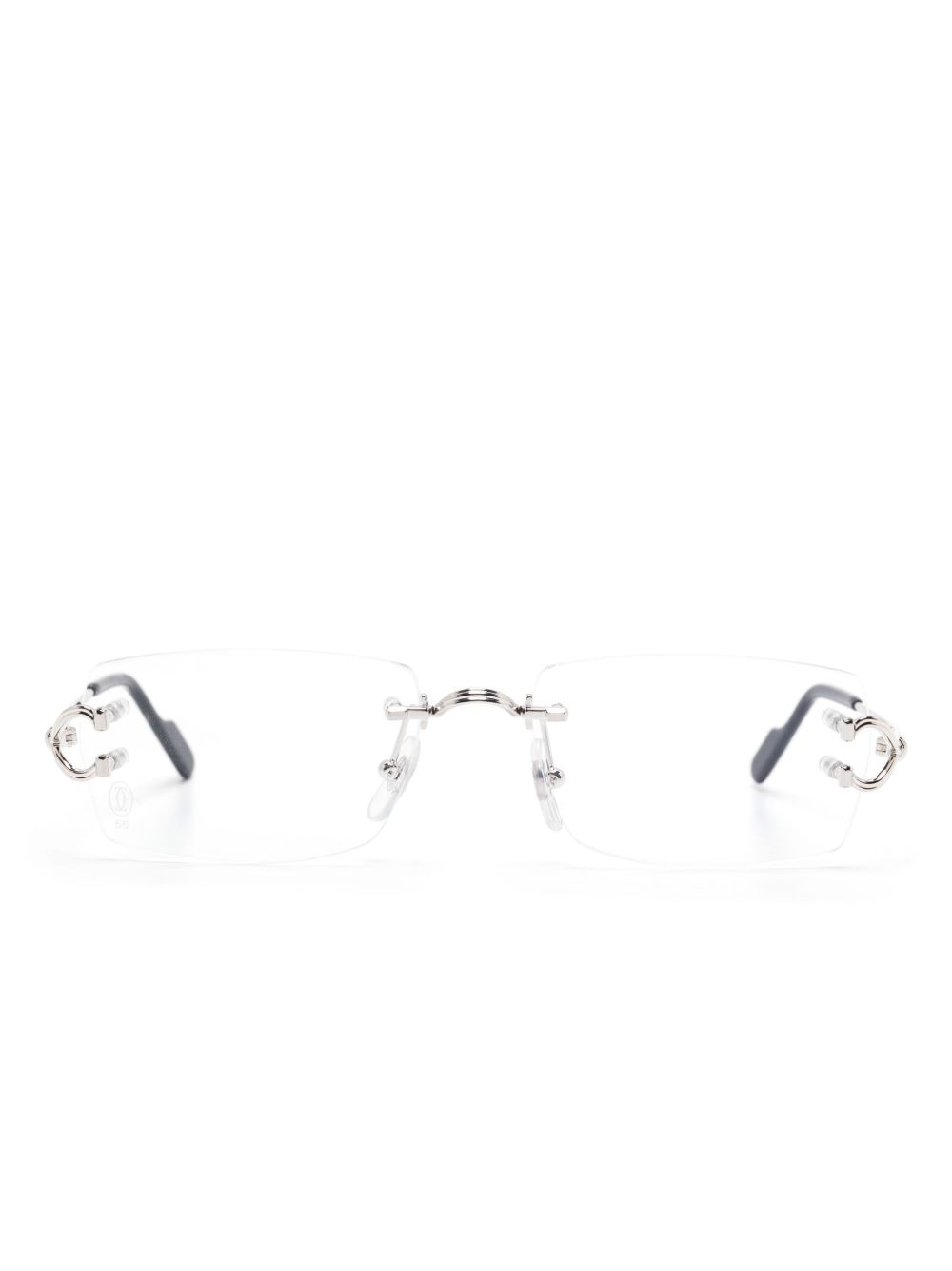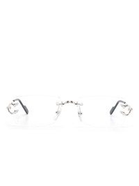 C De Cartier glasses Highlights - Silver-tone - Nose pads - Curved tips - Logo plaque at the arm - All glasses from farfetch are sold as non-prescription frames. Made in France Composition Metal (Other) 100%, Plastic 100% SIZE & FIT Measurement Arm Length 5.51 in(14 cm) Bridge Width 0.74 in(1.9 cm) Lens Diameter 2.16 in(5.5 cm) Total Width 5.51 in(14 cm)
