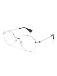 CT0449O round-frame glasses Highlights - Silver-tone/black - Metal/acetate - Round frame - Clear lenses - Logo-engraved arm - Nose pads - Straight arms - Curved tips - These glasses come with a protective case. - All glasses from farfetch are sold as non-prescription frames. Made in France Composition Metal (Other) 70%, Acetate 30% SIZE & FIT Measurement Total Width 5.31 in(13.5 cm) Lens Diameter 2.12 in(5.4 cm) Bridge Width 0.7 in(1.8 cm) Arm Length 5.51 in(14 cm)