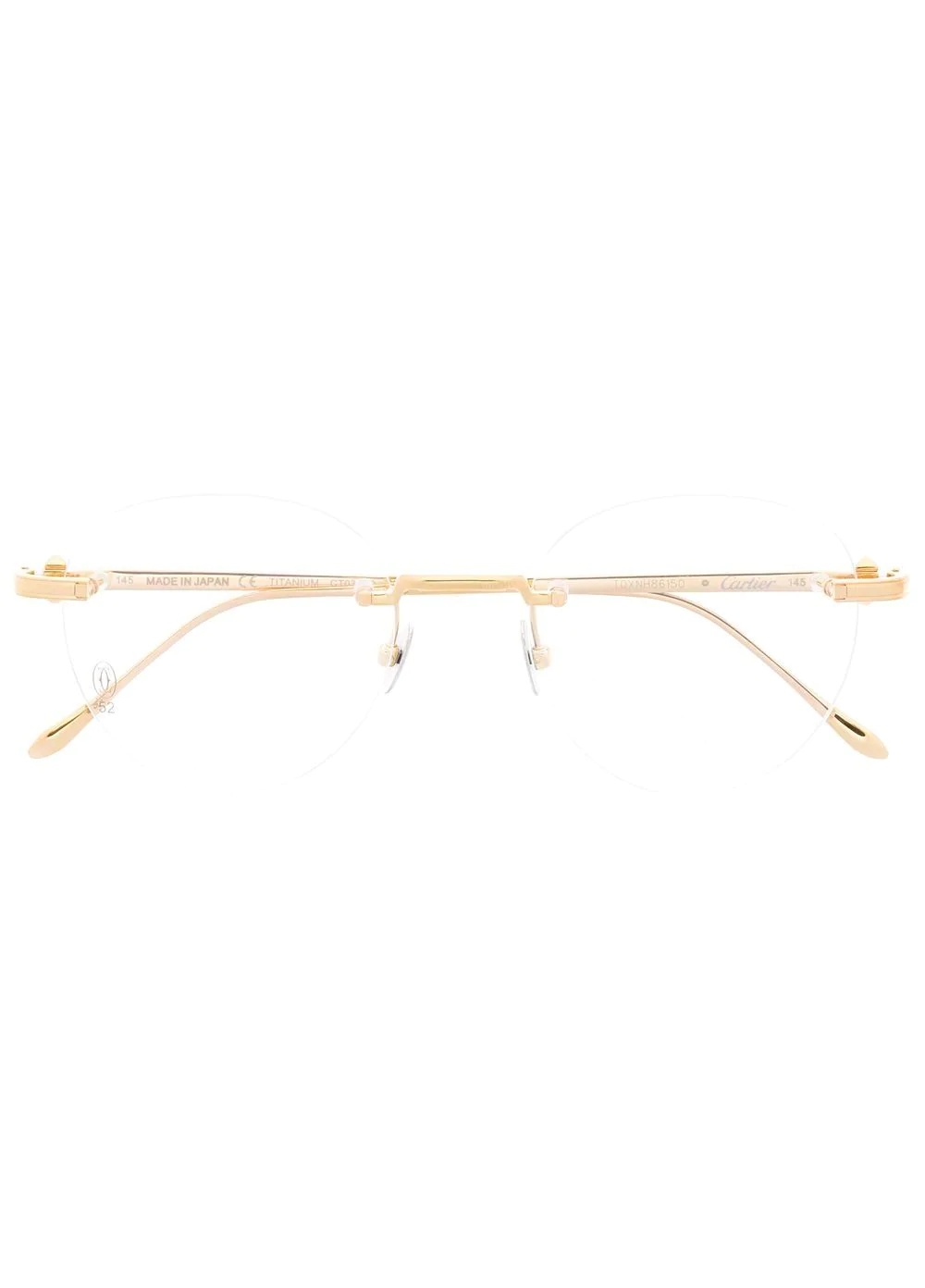 engraved-logo frameless glasses A stylish pair of glasses by Cartier Eyewear, a brand renowned for their timeless designs. Featuring an engraved logo at the arm, gold-tone arms and a frameless design which adds the perfect touch of uniqueness to a classic style. Made In Italy Composition Titanium 100% SIZE & FIT Measurement Arm Length 5.7 in(14.5 cm) Bridge Width 0.78 in(2 cm) Lens Diameter 2.04 in(5.2 cm) Total Width 5.51 in(14 cm)