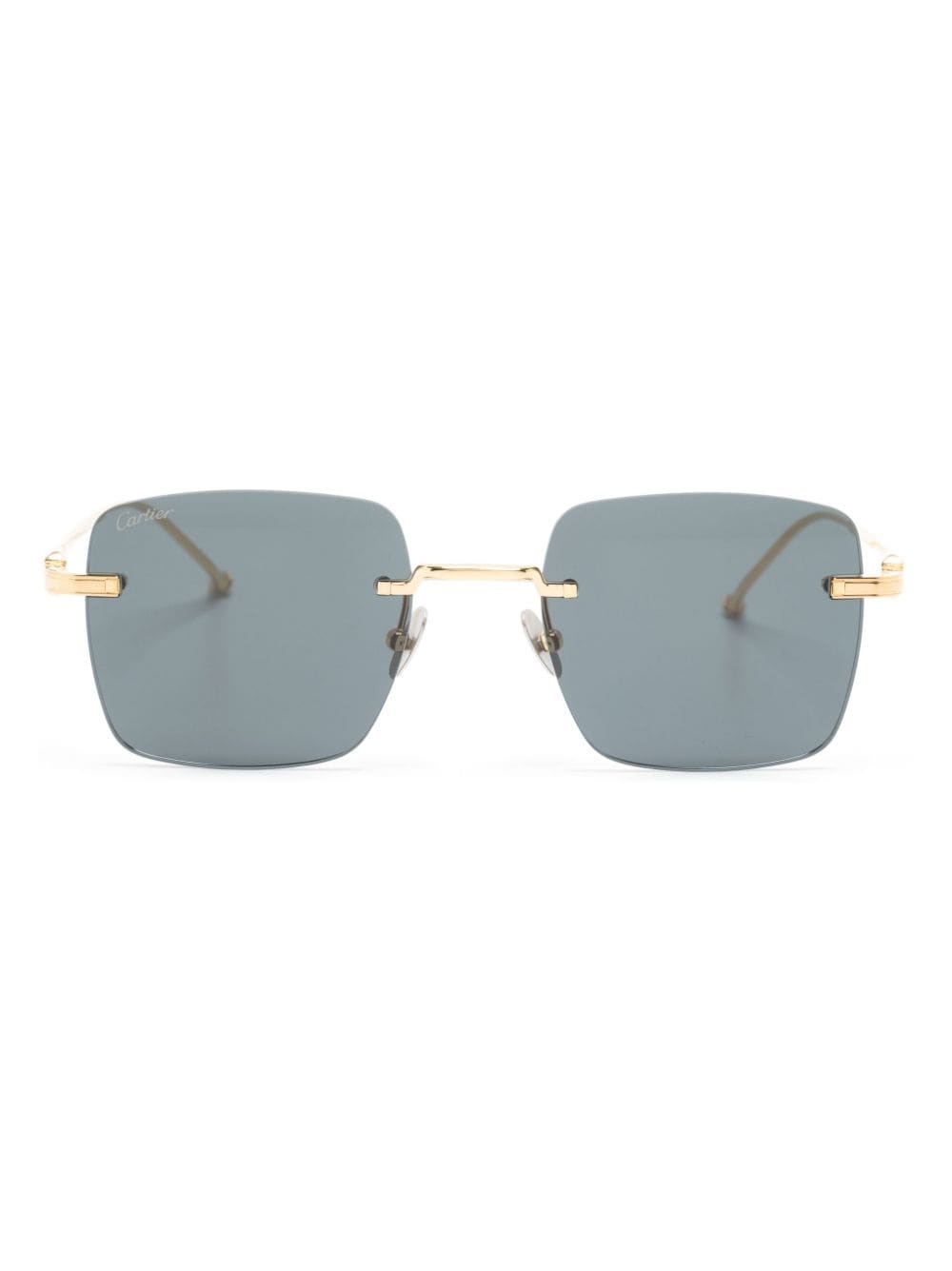 Pasha de Cartier frameless sunglasses Highlights - Gold-tone - Titanium - Grey tinted lenses - Frameless design - Logo-engraved arm - Nose pads - Straight arms - Curved tips - These glasses come with a protective case. Imported Composition Titanium 100% SIZE & FIT Measurement Arm Length 5.7 in(14.5 cm) Bridge Width 0.78 in(2 cm) Lens Diameter 2.04 in(5.2 cm) Total Width 5.51 in(14 cm)