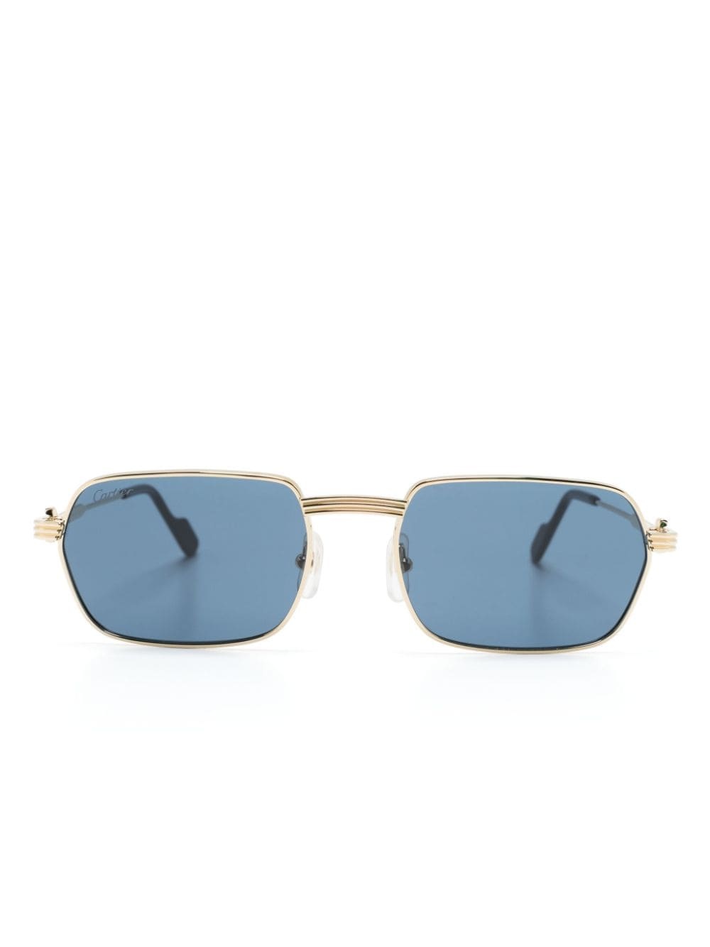 rectangle-frame sunglasses Highlights - Gold-tone - Metal - Polished finish - Rectangle frame - Uv-protective blue tinted lenses - Nose pads - Sculpted arms - Curved tips - These glasses come with a protective case. Made in France Composition Metal 100% SIZE & FIT Measurement Arm Length 5.7 in(14.5 cm) Bridge Width 0.74 in(1.9 cm) Lens Diameter 2.2 in(5.6 cm) Total Width 5.51 in(14 cm)