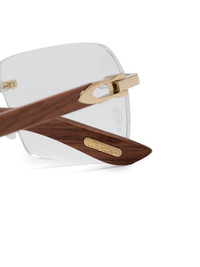 rectangle-frame glasses Highlights - Light brown - Acetate, metal - Rectangle frame - Rimless clear lenses - Nose pads - Gold-tone hardware - Logo plaque at the arm - Wood-effect straight arms - Curved tips - All glasses from farfetch are sold as non-prescription frames. - These glasses come with a protective case. Made in France Composition Acetate 100%, Metal 100% SIZE & FIT Measurement Arm Length 5.7 in(14.5 cm) Bridge Width 0.74 in(1.9 cm) Lens Diameter 2.2 in(5.6 cm) Total Width 5.7 in(14.5 cm)