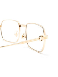 ribbed rectangle-frame glasses Highlights - Gold-tone/black - Metal/acrylic glass - Rectangle frame - Clear lenses - Nose pads - Ribbed detailing - Sculpted arms - Curved tips - All glasses from farfetch are sold as non-prescription frames. Made in France Composition Metal (Other) 100%, Acrylic 100% SIZE & FIT Measurement Arm Length 5.9 in(15 cm) Bridge Width 0.74 in(1.9 cm) Lens Diameter 2.2 in(5.6 cm) Total Width 5.62 in(14.3 cm)
