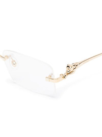 rectangle frame eyeglasses In need of some fresh perspective? Cartier Eyewear has got you covered (your eyes mostly) with these rimless square frame glasses that exude elegance with gold-tone arms and nose bridge along with an engraved logo. A new stylish vision lays right before you. Made in France Composition Metal 100% SIZE & FIT Measurement Arm Length 5.51 in(14 cm) Bridge Width 0.7 in(1.8 cm) Lens Diameter 2.08 in(5.3 cm) Total Width 5.43 in(13.8 cm)