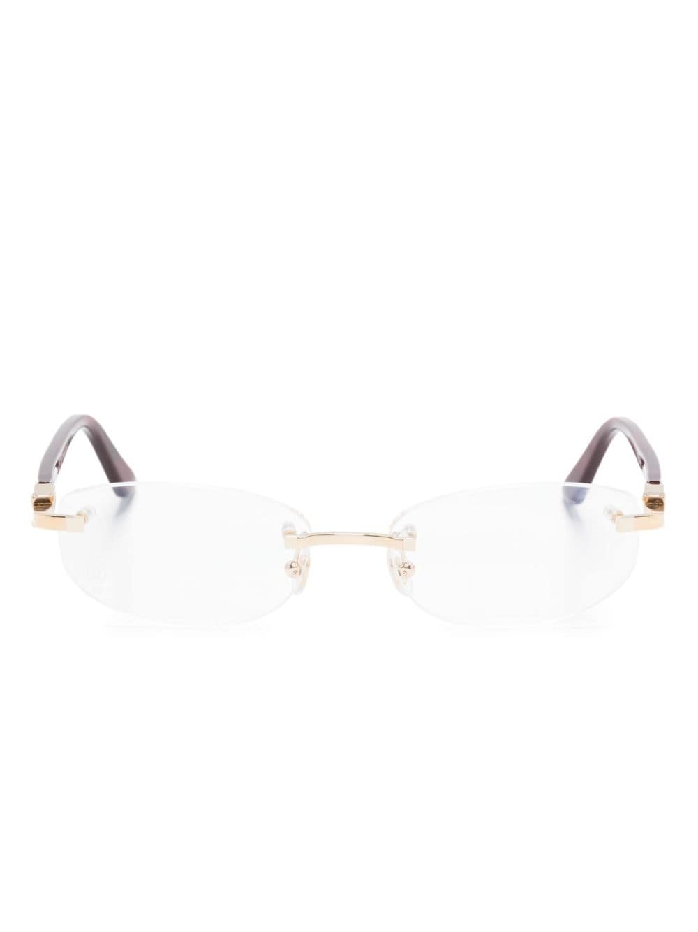 Signature C De Cartier glasses Highlights - Oxblood red - Oval frame - Clear lenses - Lens decal - C logo plaque - Marbled pattern - Straight arms - Logo-engraved - Curved tips - Nose pads - These glasses come with a protective case. - All glasses from farfetch are sold as non-prescription frames. Made in France Composition Acetate 100% SIZE & FIT Measurement Total Width 5.23 in(13.3 cm) Lens Diameter 1.92 in(4.9 cm) Bridge Width 0.62 in(1.6 cm) Arm Length 5.27 in(13.4 cm)