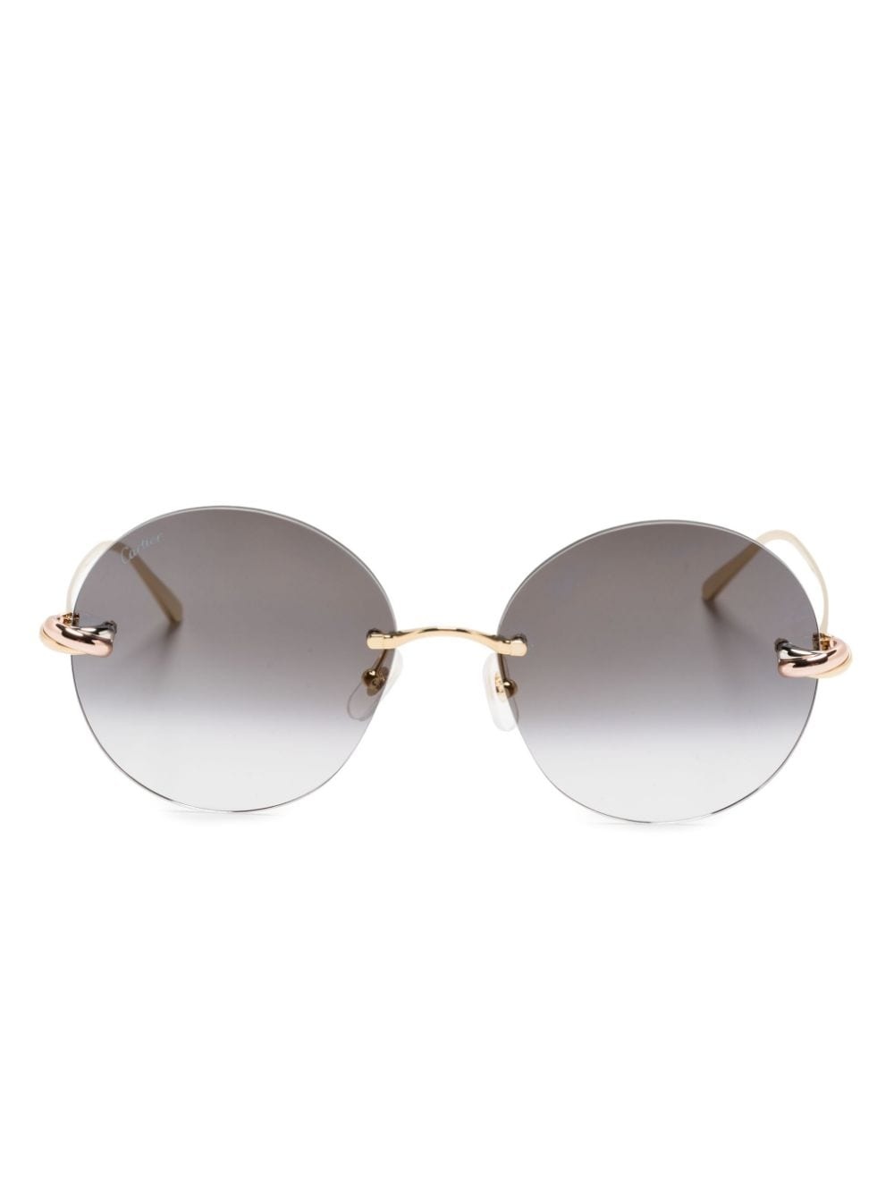 Trinity round-frame sunglasses Highlights - Gold-tone - Metal - Round frame - Grey tinted lenses - Logo lens decal - Rimless lenses - Nose pads - Straight arms with curved tips - These glasses come with a protective case. Made in Italy Composition Metal 100% SIZE & FIT Measurement Arm Length 5.51 in(14 cm) Bridge Width 0.62 in(1.6 cm) Lens Diameter 2.36 in(6 cm) Total Width 5.9 in(15 cm)