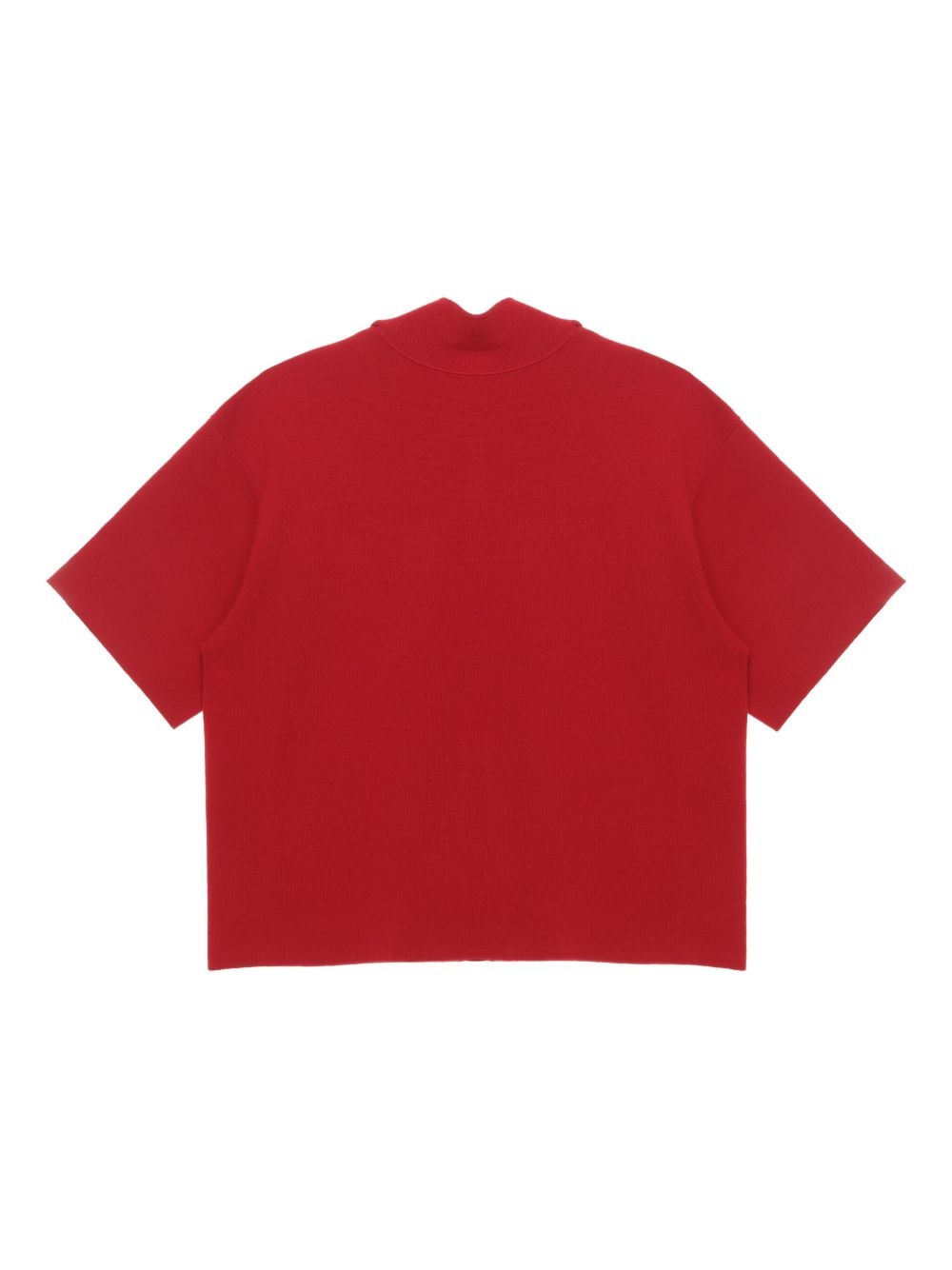 high-neck short-sleeve top Highlights - Red - High neck - Short sleeves - Scarf collar detail Imported Composition Lining: Cashmere 100% Outer: Wool 100% Washing instructions Read Manufacturer Guidelines