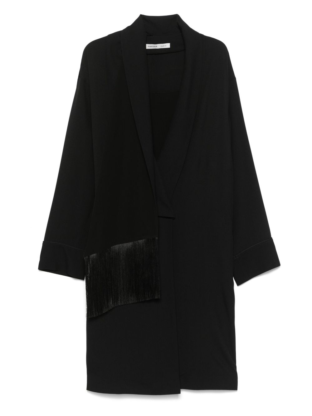 Peignoir midi dress Highlights - Black - Layered design - Scarf detailing - Drop shoulder - Long sleeves Imported Composition Outer: Viscose 100% Lining: Silk 100% SIZE & FIT Model measurements Height 5 ft 11 in(1.8 m) Bust/Chest 31.49 in(80 cm) Hips 36.61 in(93 cm) Waist 24.4 in(62 cm) FittingInformation Designed to be unstructured, offering a loose fit throughout The detachable slip sits just away from the body, offering a close yet comfortable fit Made from a midweight non-stretch fabric Washing instructions Dry Clean Only