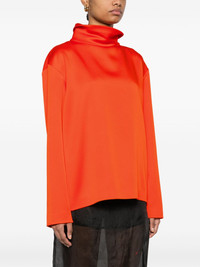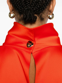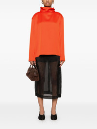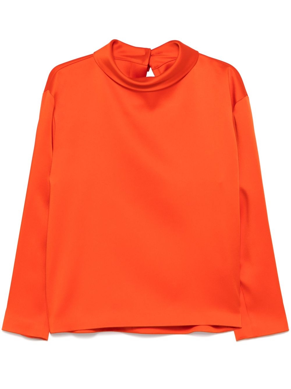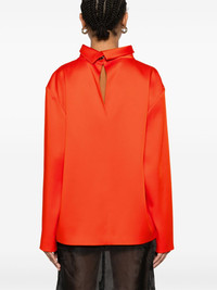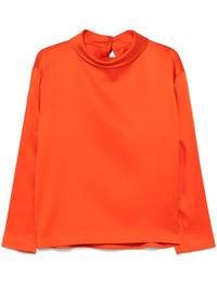 satin blouse Highlights - Carrot orange - Short front button fastening - Straight hem - Pointed flat collar - Long sleeves Imported Composition Acetate 71%, Viscose 29% SIZE & FIT Model measurements Height 5 ft 10 in(1.78 m) Bust/Chest 32.67 in(83 cm) Hips 35.43 in(90 cm) Waist 23.22 in(59 cm) FittingInformation Designed to be unstructured, offering a loose fit throughout Made from a midweight non-stretch fabric