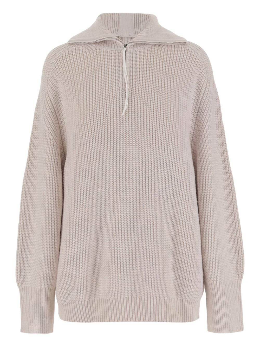 zip-neck wool sweater Highlights - Off-white - Ribbed knit - Zip fastening - Elbow patches Imported Composition Wool 100% Washing instructions Read Manufacturer Guidelines