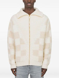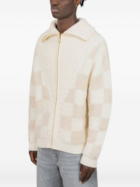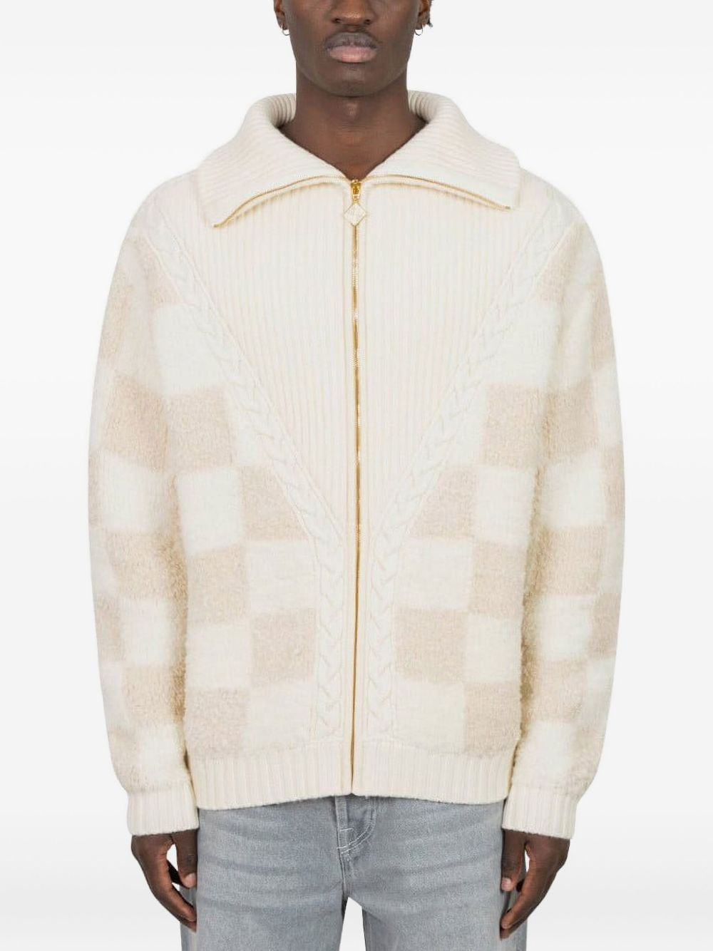 cable-knit cardigan Highlights - White - Check pattern - Cable knit - Zip fastening - Gold zip Imported Composition Merino 92%, Polyamide 7%, Elastane 1% Washing instructions Read Manufacturer Guidelines