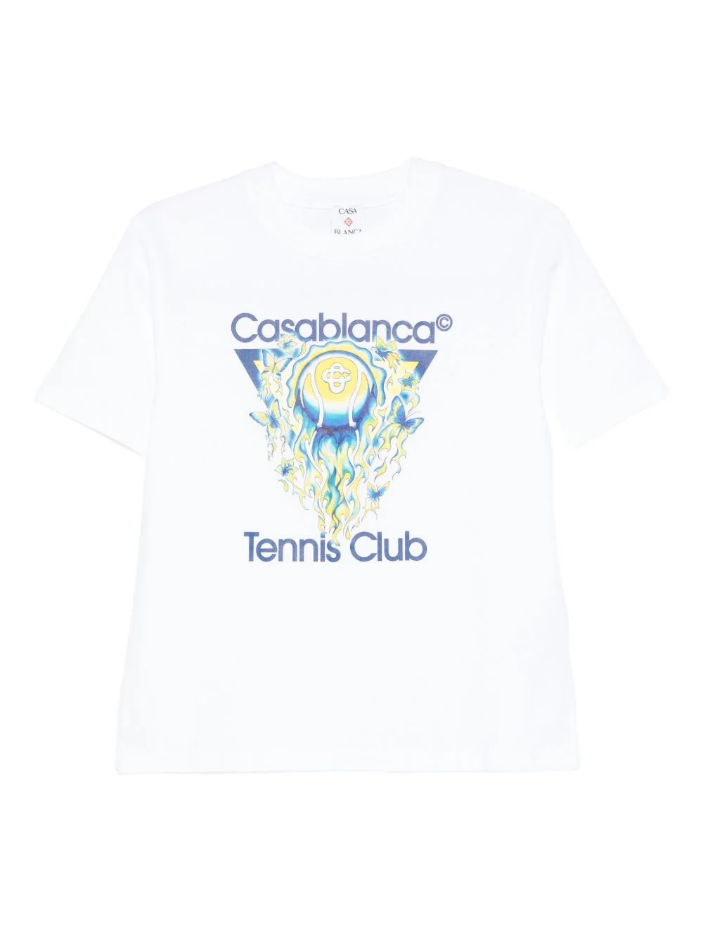 Casablanca cotton T-shirts Highlights - White and multicolour - Cotton - Logo print on the chest - Straight hem Imported Composition Cotton 100% SIZE & FIT Model measurements Height 5 ft 11 in(1.8 m) Bust/Chest 32.28 in(82 cm) Hips 35.82 in(91 cm) Waist 25.19 in(64 cm)