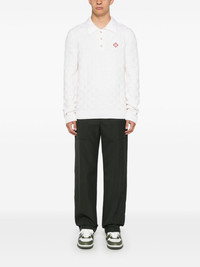 Column stitch polo shirt Highlights - Light beige - Merino wool blend - 3d-knit construction - Short front button fastening - Polo collar - Long sleeves - Logo patch at the chest - Ribbed cuffs and hem Made in United Kingdom Composition Merino 98%, Rayon 95%, Polyester 5%, Elastane 1%, Polyamide 1% SIZE & FIT Model measurements Height 6 ft 1 in(1.86 m) Bust/Chest 36.61 in(93 cm) Hips 37 in(94 cm) Waist 28.74 in(73 cm) Measurement CHEST 44.88 in(114 cm) SLEEVE LENGTH 34.25 in(87 cm) LENGTH 25.98 in(66 cm) Shoulder Width 16.14 in(41 cm) FittingInformation Designed for a relaxed fit, this piece allows for comfort and movement when worn The ribbed hem offers a close, comfortable fit Made with a midweight knit, this piece offers some stretch