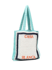 crochet-detail tote bag Highlights - Pale-blue - Crochet body - Navy-blue trim - Embroidered logo - Top handles - Cotton construction Imported Composition Cotton 100% SIZE & FIT Measurement DEPTH 3.93 in(10 cm) HEIGHT 14.17 in(36 cm) WIDTH 12.59 in(32 cm)