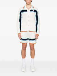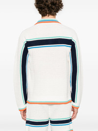 crochet tennis shacket Highlights - White - Front button fastening - Camp collar - Long sleeves - Two side patch pockets Imported Composition Cotton 100%, Viscose 95%, Polyester 5% SIZE & FIT Model measurements Height 6 ft 2 in(1.87 m) Bust/Chest 38.97 in(99 cm) Hips 37.99 in(96.5 cm) Waist 29.52 in(75 cm) FittingInformation Designed to be unstructured, offering a loose fit throughout Made from a midweight non-stretch fabric, this piece offers minimal elasticity when worn Washing instructions Hand Wash