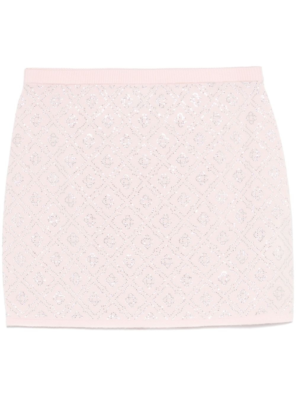 crystal-monogram mini skirt Highlights - Rose pink - Elasticated waistband - Unlined - Straight hem Imported Composition Merino 100%, glass 100% SIZE & FIT Model measurements Height 5 ft 11 in(1.8 m) Bust/Chest 32.67 in(83 cm) Hips 35.82 in(91 cm) Waist 25.98 in(66 cm) FittingInformation This mini-length skirt is intended to be worn just below the waist The elasticated waist allows for a comfortable fit Made with a midweight knit, this piece offers some stretch Washing instructions Dry Clean Only