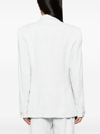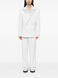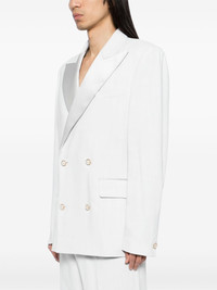 double breasted jacket Highlights - White - Button fastening - Peak lapels - Stitches pockets - Buttoned cuffs Imported Composition Outer: Viscose 100% Lining: Viscose 52%, Cotton 48% SIZE & FIT Model measurements Height 6 ft 1 in(1.85 m) Bust/Chest 35.43 in(90 cm) Hips 36.22 in(92 cm) Waist 28.74 in(73 cm) FittingInformation Designed for a slim fit, offering a comfortable fit that sits just away from the body The dart stitching adds structure and a closer fit in the torso of this piece Made from a midweight non-stretch fabric This piece fits large – take one size down