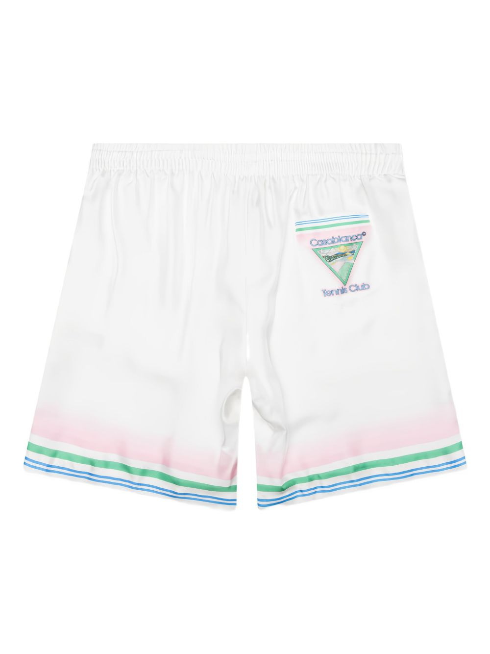 drawstring striped shorts Highlights - White - Silk - Multicoloured striped trim - Tennis club graphic - Drawstring waist - Straight hem Imported Composition Silk 100% Washing instructions Read Manufacturer Guidelines