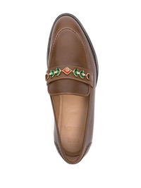 embellished leather loafers Casablanca refreshes the humble loafer with vibrant enamel details and gold-tone hardware. This almond-toe pair is crafted from smooth brown leather and rests on a stacked heel. Highlights - Caramel brown - Calf leather - Tonal stitching - Enamel detail - Gold-tone hardware - Almond toe - Rubber sole Made in Italy Composition Lining: Calf Leather 100% Outer: Calf Leather 100% Sole: Calf Leather 100% SIZE & FIT Measurement HEEL 1.18 in(3 cm) Sole height 0.59 in(1.5 cm)