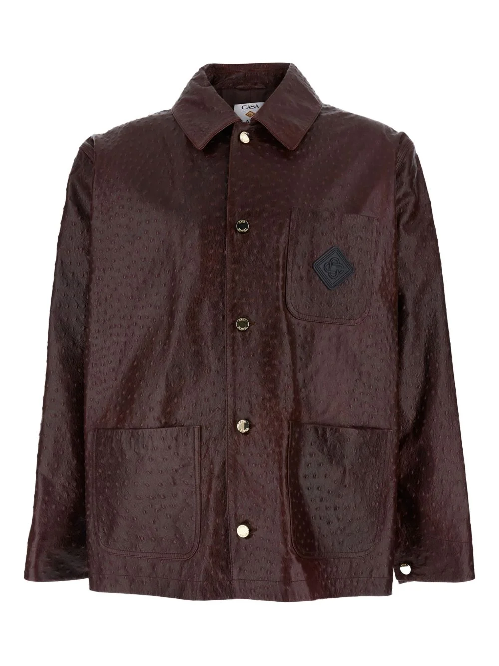 embossed patch jacket Highlights - Brown - Embossed - Button fastening - Chest patch pocket - Front patch pockets - Classic collar Imported Composition Calf Leather 100% Washing instructions Read Manufacturer Guidelines
