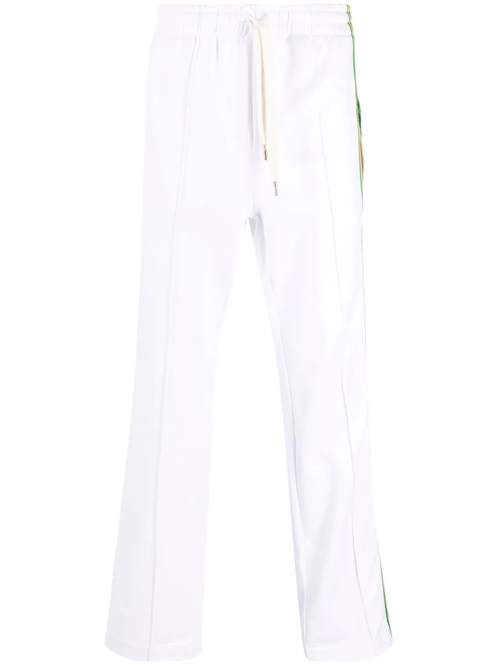 embroidered-logo striped joggers Highlights - White - Organic cotton - Embroidered logo - Side stripe detailing - Drawstring fastening waist - Straight leg Imported Composition Outer: Polyester 100%, Viscose 100%, Organic Cotton 100% Lining: Cotton 100% SIZE & FIT Model measurements Height 6 ft 1 in(1.86 m) Bust/Chest 35.43 in(90 cm) Hips 35.43 in(90 cm) Waist 29.92 in(76 cm) FittingInformation This piece fits true to size. We recommend you get your regular size Cut for a slim fit Made with a mid-weight fabric Washing instructions Dry Clean Only