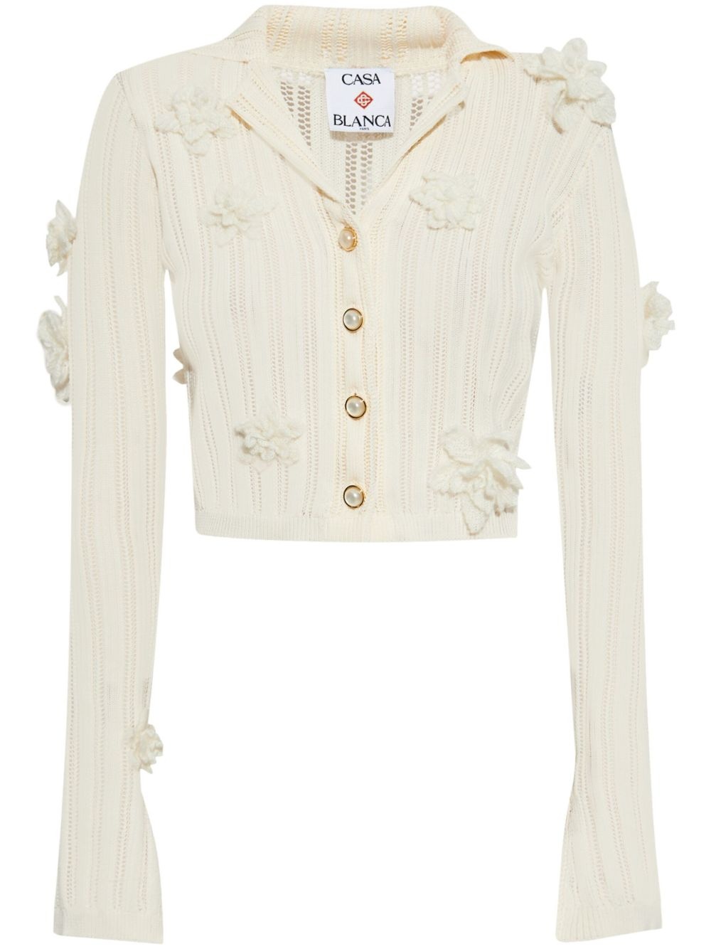 floral-applique top Highlights - White - Front button fastening - Ribbed cuffs and hem - Long sleeves - Cropped Imported Composition Cotton 100%