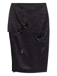 floral-detail midi skirt Highlights - Black - Floral embellishment - Slit detail Made In United Kingdom Composition Viscose 100% Washing instructions Read Manufacturer Guidelines