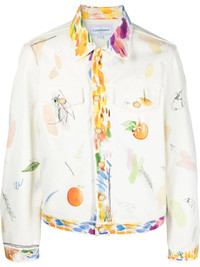 fruit-print cotton jacket white/multicolour cotton all-over graphic print classic collar front button fastening two chest flap pockets long sleeves Made In Italy Composition Cotton 100% SIZE & FIT Model measurements Height 6 ft 2 in(1.87 m) Bust/Chest 38.18 in(97 cm) Hips 36.61 in(93 cm) Waist 29.13 in(74 cm) FittingInformation This piece fits true to size. We recommend you get your regular size Cut for a loose fit Made with a mid-weight non-stretch fabric